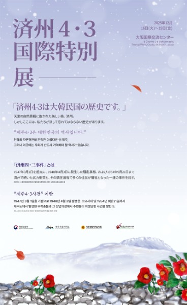 오사카 국제교류센터에서 열리는 ‘제주4·3 국제 특별전’은 제주특별자치도의회와 제주4·3희생자유족회가 후원한다.