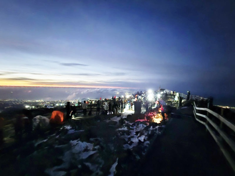한라산도 새해를 맞는 발걸음으로 북적였다. 2026년 새해맞이를 위한 한라산 야간산행에는 정상 탐방 예약자 1천500명을 포함해 2천650여 명이 참여했다.