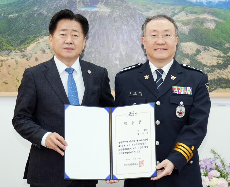 제주특별자치도가 자치경찰위원회 자치경찰협력과장에 강동휘 총경(승)을 임용하고 5일 임용장을 수여했다.