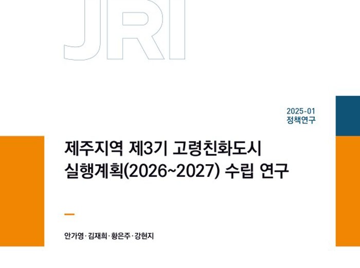 제주연구원 고령사회연구센터가 제주지역의 고령친화도시 3기 실행계획 수립을 통한 고령친화도시 국제네트워크 회원 도시 가입 자격을 유지하기 위해 ‘제주지역 제3기 고령친화도시 실행계획(2026~2027) 수립 연구’ 보고서(연구책임자, 안가영 전문연구위원)를 발간했다.