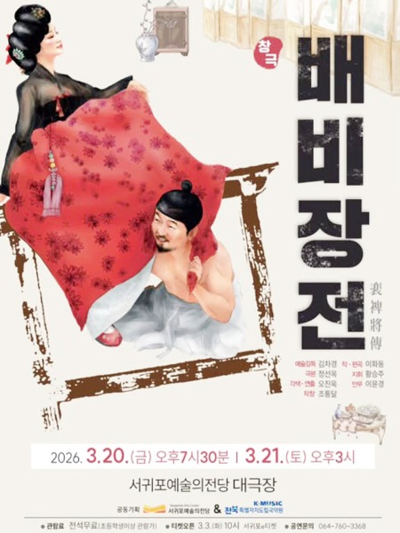 서귀포예술의전당이 전북도립국악원과 공동기획으로 창극 ‘배비장전’을 오는 3월 20일과 21일 서귀포예술의전당 대극장 무대에 올린다.