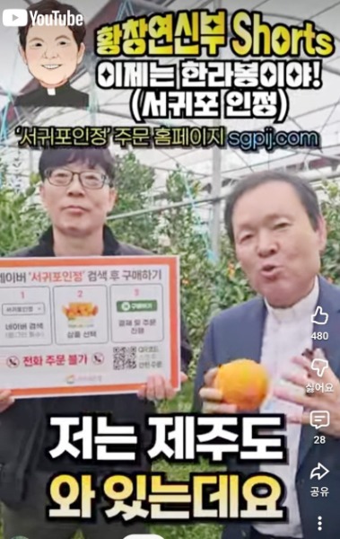 서귀포시는 지난 2월 3일 면담에서 황 신부와 서귀포산 만감류 판로 확대 및 시 공식 온라인 쇼핑몰 ‘서귀포in정‘ 홍보에 협력하기로 하고, 1차 영상에 이어 감귤농업 교육 현장을 담은 2차 영상을 제작하게 됐다.