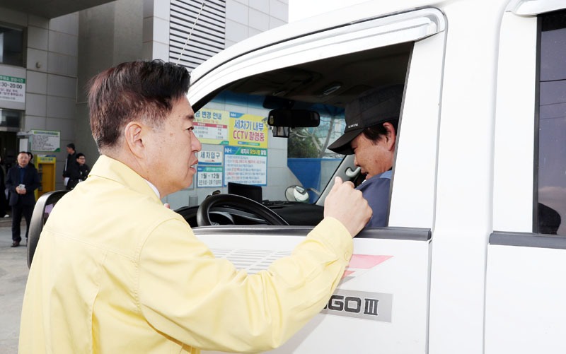 주유소를 찾은 재선충 방제 작업 차량 기사와 주유소 직원들과도 대화를 나누며 현장 노고를 격려했다.