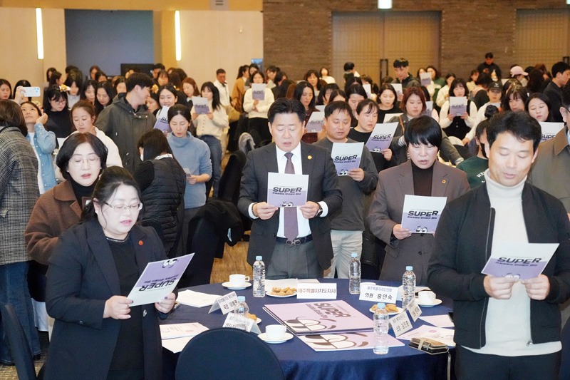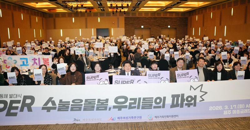 제주도와 제주가족친화지원센터(센터장 강문실)가 지난 17일 메종글래드 제주 컨벤션홀에서 ‘우리가 수눌음돌봄을 하는 이유’를 주제로 2026년 수눌음돌봄공동체 발대식을 열고 공동체 활동의 본격적인 시작을 알렸다.