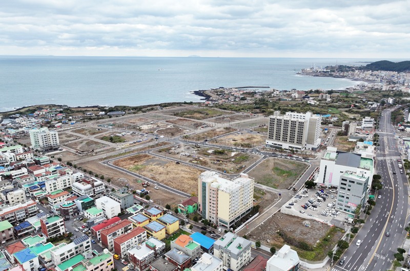 제주시가 화북상업지역 도시개발사업 구역 내 주상복합용지(체비지)의 허용 용도를 대폭 확대하고 고도 기준을 완화하는 등 개발 여건을 개선해 재매각에 나선다.
