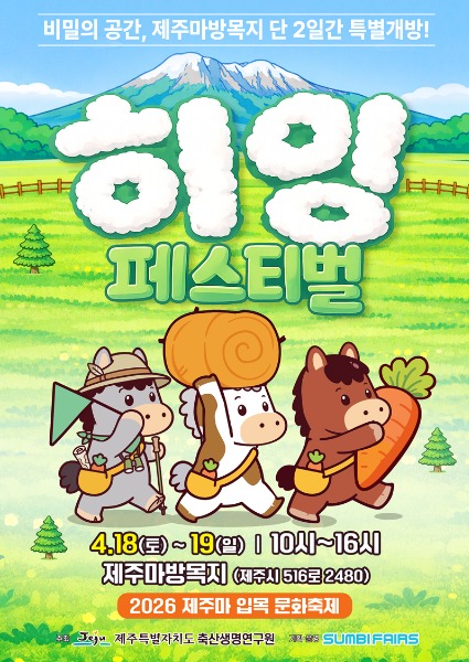 제주도 축산생명연구원이 천연기념물 제주마(馬)와 전통 목축문화를 알리는 제주마 입목 문화 축제 ‘히잉 페스티벌’을 오는 18~19일 제주마방목지에서 개최한다.