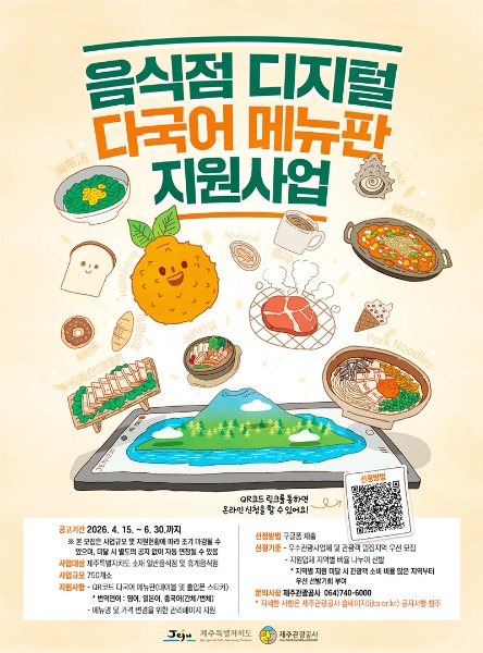 한편 제주관광공사는 지난 2022년과 2024년, 2025년 등 3개년에 걸쳐 총 1천586개 도내 음식점에 디지털 다국어 메뉴판 설치를 지원한 가운데 해당 사업을 통해 외국인 관광객에 대한 응대가 훨씬 수월해지면서 고객 만족도가 높아졌다는 평가를 얻은 바 있다.