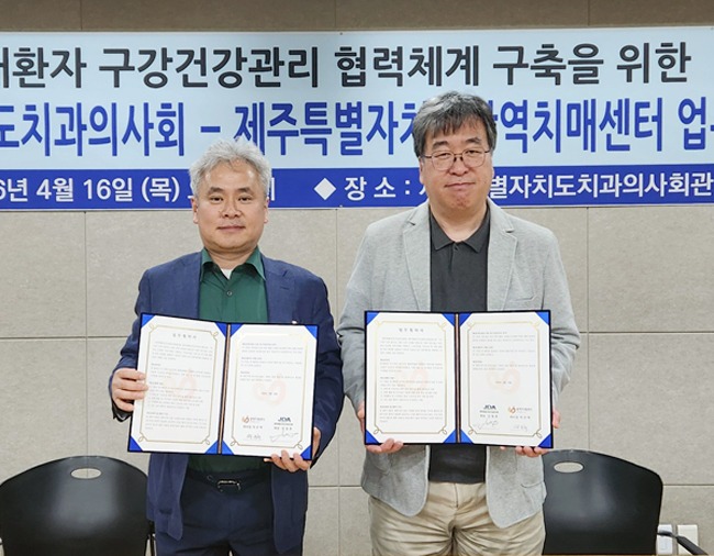 제주도광역치매센터(센터장 박준혁)와 제주도치과의사회(회장 강철흔)가 지난 17일, 제주지역 치매환자의 구강건강관리 협력을 위한 업무협약(MOU)을 체결했다.