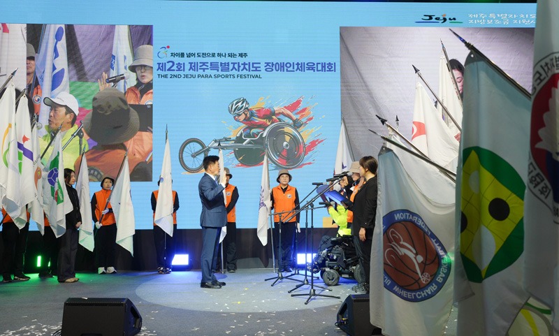 오영훈 도지사는 개회사에서 "지난해 처음 독립 개최로 새출발을 알린 대회가 올해 서귀포에서 두 번째 역사를 쓰게 됐다”며 “차이를 넘어 함께 도전하는 것의 가치를 보여주는 자리인 만큼, 스포츠를 사랑하는 여러분의 마음이 어떤 장벽 앞에서도 멈추지 않도록 제주도가 함께하겠다”고 밝혔다.