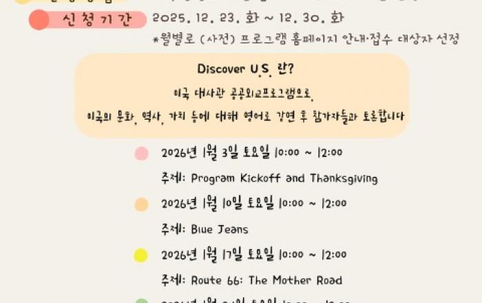 제주도 한라도서관이 주한미국대사관과 협력해 도민의 글로벌 이해와 영어 활용 역량 강화를 위한 교육 프로그램 ‘Discover U.S.’를 올해부터 운영한다.‘Discover U.S.’는 주한미국대사관의 공공외교 협력 프로그램으로 미국 독립 250주년을 기념해 미국의 문