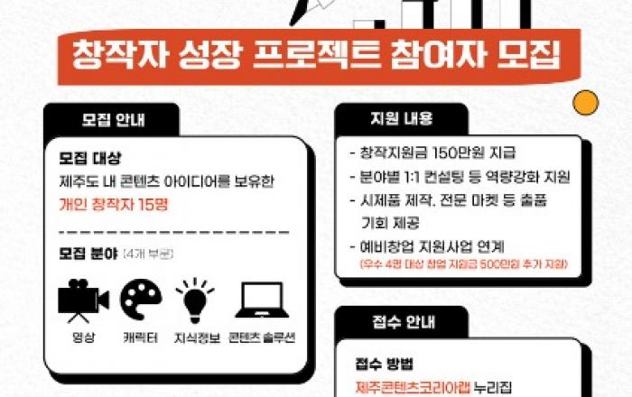 제주콘텐츠진흥원이 지역 콘텐츠 창작 활성화를 위해 추진 중인 ‘제주콘텐츠코리아랩 운영사업’의 일환으로 도내 콘텐츠 창작자를 대상으로 ‘JEMI CS 창작자 성장 프로그램’ 참여자를 모집한다.이 프로그램은 단순 창작 지원을 넘어 아이디어가 시장에서 적용될 수 있도록 사업