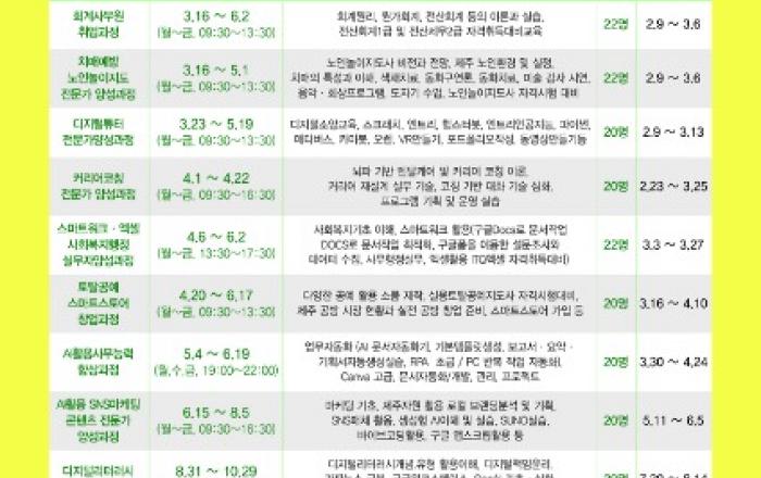 제주도가 경력 보유 여성과 재직 여성의 재취업을 돕기 위해 올해 ‘여성새로일하기센터 직업교육훈련’ 과정에 참여할 296명을 모집한다.제주도는 디지털·사무·돌봄·창업 등 지역 수요와 여성의 생애주기를 반영한 15개 과정을 제주·서귀포·한라 3개 새일센터를 통해 운영한다.
