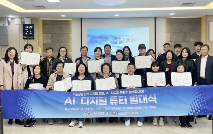 제주도경제통상진흥원 소상공인경영지원센터가 지난 13일 발대식을 개최해 소상공인의 디지털 전환을 돕는 ‘AI 디지털 튜터’ 17명을 위촉했다.‘튜터’란 지도 교사란 뜻으로 디지털 사용이 어려운 소상공인들과의 매칭을 통해 현장에서 실무 위주의 교육을 진행할 예정이다.▲&n