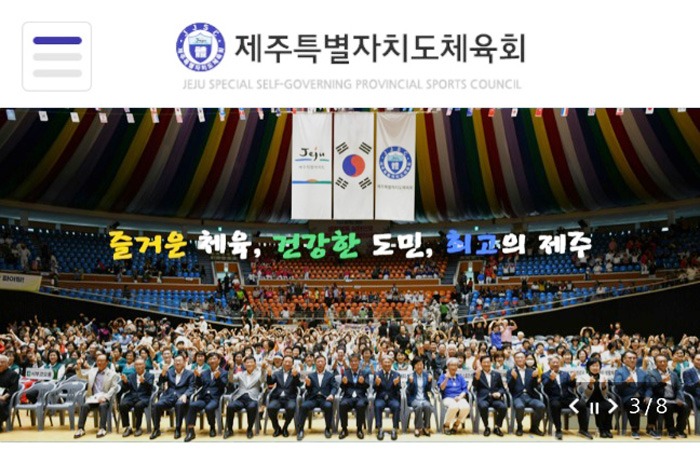▲ 제주특별자치도체육회 홈페이지 타이틀또한 체육우수학교 지원 기준이 명확하지 않은 점도 지적했으며 학교체육위원회 및 경기력향상위원회 심의 등 객관적인 선정 절차를 마련하도록 했다.