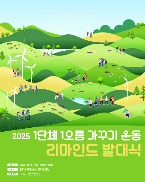 제주특별자치도가 오는 15일 한라수목원 숲속 야외공연장에서 ‘1단체 1오름가꾸기 운동 리마인드 발대식’을 개최한다.