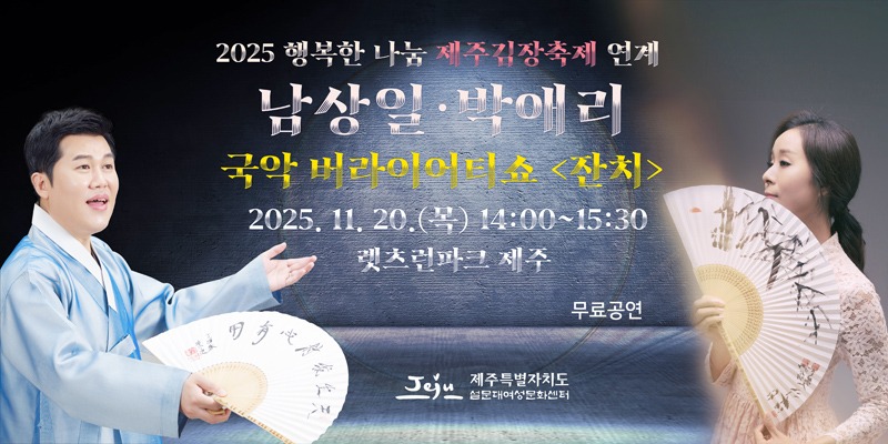 제주도 설문대여성문화센터가 오는 20일 오후 2시부터 3시 30분까지 렛츠런파크 제주에서 ‘2025 행복한 나눔 제주김장축제’와 연계한 국악 버라이어티쇼 ‘잔치’를 개최한다.