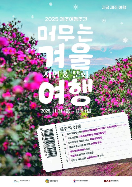 김양보 제주도 관광교류국장은 “이번 겨울 여행주간은 마을이 여행의 중심이 되는 시간으로, 지역민과 여행자가 함께 만들어가는 체험형 여행모델”이라며 “겨울 제주의 고요함 속에서 여행자가 일상의 쉼과 의미 있는 시간을 보내길 바란다”고 말했다.