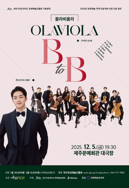 이번 공연은 (재)예술경영지원센터의 2025 공연예술지역유통 지원사업에 선정된 프로그램으로, 제주도민에게 수준 높은 클래식 음악을 접할 기회를 제공하고자 마련됐다.