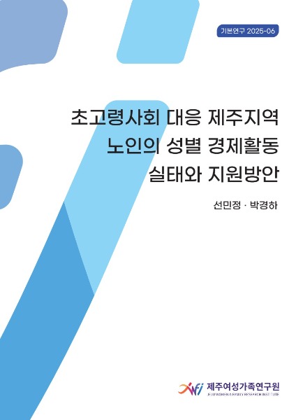 제주여성가족연구원이 제주지역 노인의 소득을 보전하고 삶의 질을 높이기 위한 ‘초고령사회 대응 제주지역 노인의 성별 경제활동 실태와 지원방안’ 연구보고서(연구책임자 선민정 연구위원)를 발간했다.