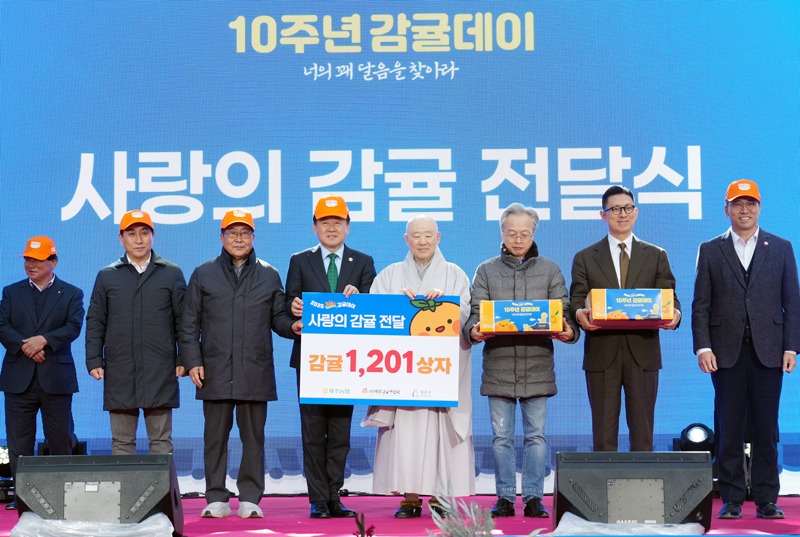 제주감귤연합회는 감귤데이의 의미를 담아 감귤 1천201상자를 사회복지법인 대한불교조계종 봉은사에 기부했다. 기부 감귤은 산하시설과 취약계층에게 전달돼 ‘국민 건강 과일’의 가치를 실천했다.