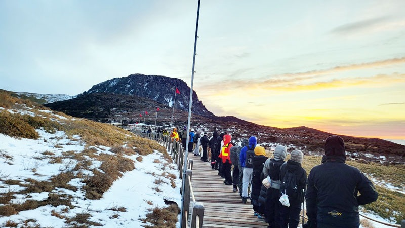 한라산도 새해를 맞는 발걸음으로 북적였다. 2026년 새해맞이를 위한 한라산 야간산행에는 정상 탐방 예약자 1천500명을 포함해 2천650여 명이 참여했다.