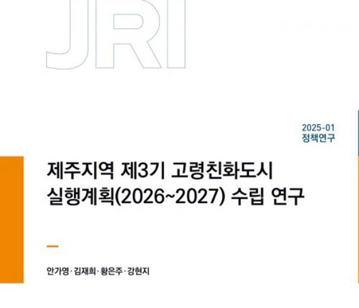 제주연구원 고령사회연구센터가 제주지역의 고령친화도시 3기 실행계획 수립을 통한 고령친화도시 국제네트워크 회원 도시 가입 자격을 유지하기 위해 ‘제주지역 제3기 고령친화도시 실행계획(2026~2027) 수립 연구’ 보고서(연구책임자, 안가영 전문연구위원)를 발간했다.
