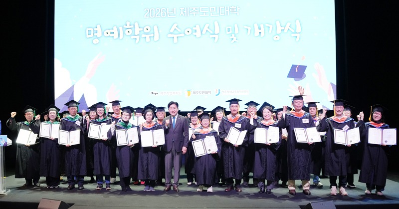 제주도민대학이 출범 이후 첫 명예석사 5명을 배출하며 2026년 새 학기를 시작했다.