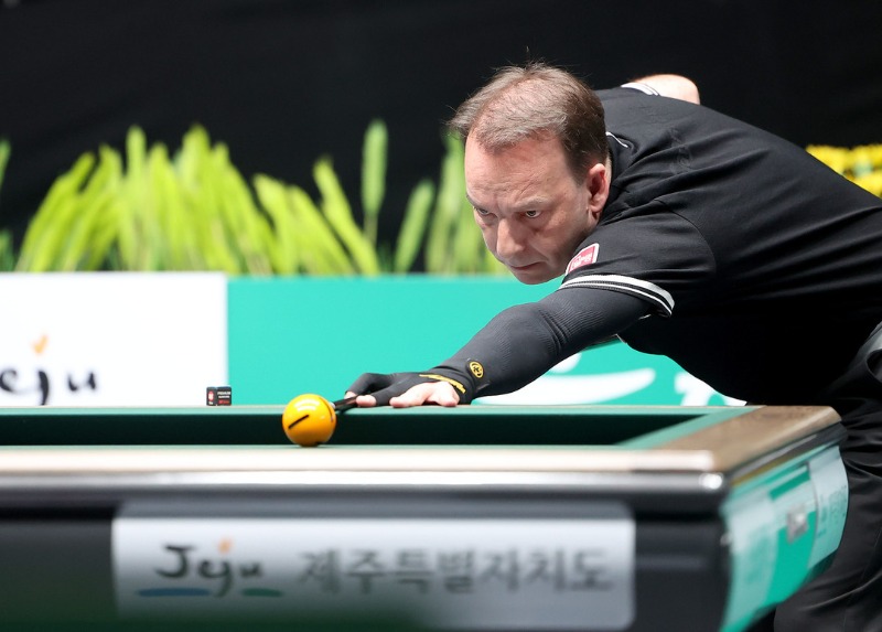 ‘스페인발 강세’는 16강에서도 이어졌다. 시즌 랭킹 1위 다니엘 산체스(스페인·웰컴저축은행)가 로빈슨 모랄레스(콜롬비아·휴온스)를 세트스코어 3:0으로 잡아내고 8강에 올랐다. 산체스는 1세트 15:9(13이닝) 2세트 15:10(9이닝) 3세트 15:3(6이닝)로 잡아냈다.