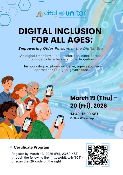 유엔훈련연구기구(UNITAR) 제주국제연수센터(소장 신성철)가 오는 19일부터 20일까지 ‘모든 세대를 위한 디지털 포용: 고령층 역량 강화 방안’를 주제로 온라인 워크숍을 개최한다.