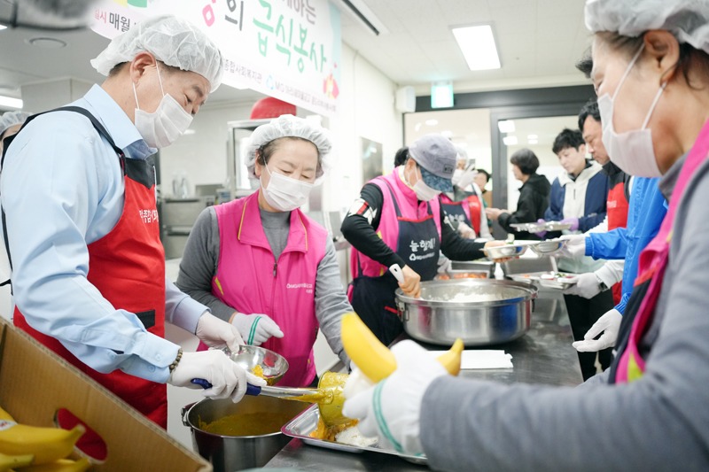 24일 지역사회 자원봉사단체와 아라종합사회복지관 경로식당서 배식 지원