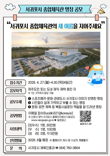 “서귀포시 종합체육관의 새 이름을 지어주세요”
