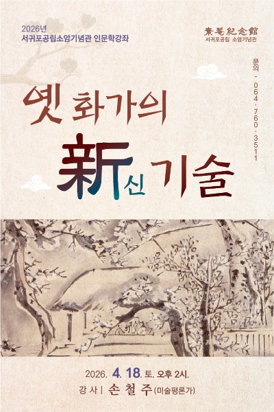 변종필 서귀포공립미술관장은 “전통문화에 대한 해박한 지식이 담긴 흥미로운 강연을 통해 우리 선조들의 식견과 재능에 다시금 감탄하게 될 것”이라며 “이번 강좌가 옛 화가들의 창작 열정을 생생하게 느껴보는 소중한 시간이 되기를 바란다”고 밝혔다.