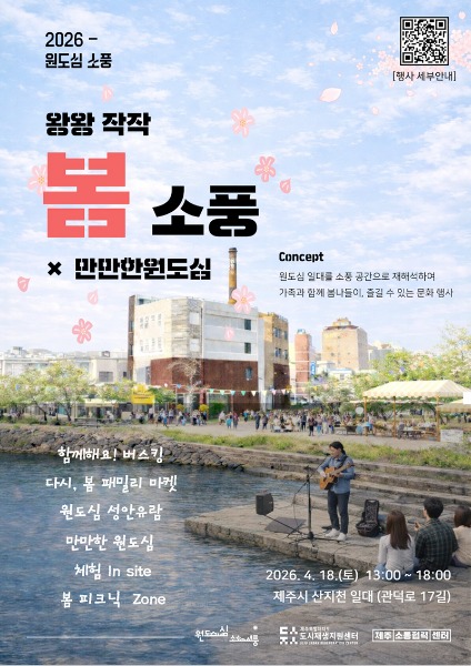 ‘원도심 소풍’ 관계자는 “이번 원도심 소풍은 지역 단체들이 함께 기획하고 운영하는 협력형 행사로, 도민 및 지역주민들이 자연스럽게 교류하며 원도심의 매력을 새롭게 발견하는 계기가 될 것”이라며 “가족과 함께 봄날의 소풍처럼 편안하게 즐길 수 있는 문화행사에 많은 관심과 참여를 바란다”고 전했다.