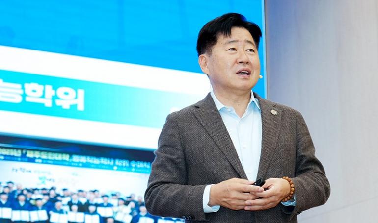 제주도가 도민 주도형 평생학습 시스템 구축에 본격적으로 나서고 있다. 제주특 별자치도는 18일 오전 제주대학교 아라컨벤션홀에서 ‘제주도민대학 디자인단 워크숍’을 개최했다.공개모집으로 선발된 ‘제주도민대학 디자인단’ 100여 명이 참석한 가운데 오영훈 지사는 ‘함께 배우...