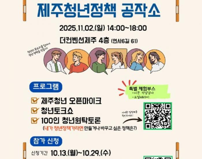 제주특별자치도가 청년들의 창업과 커리어 고민을 로컬 현장 경험자들과 나누는 소통의 장을 마련한다.제주도는 29일 오후 1시 제주호은아트센터에서 제주 로컬 창업자·운영자들과 ‘팰롱팰롱 커피챗’을 개최한다.▲ ‘팰롱팰롱 커피챗’ 포스터이번 행사는 청년들이 직접 기획한 ‘2...