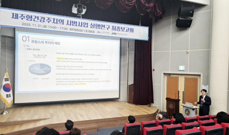 제주특별자치도가 지난 21일 오후, 제주웰컴센터에서 ‘제주형 건강주치의 시범사업 실행연구 최종보고회’를 열고, 지역사회 중심의 일차의료체계 구축을 위한 제주형 주치의제 모델과 운영방안을 공개했다.연구는 도민의 보편적 건강권 보장을 목표로 △서비스 제공 모델 개발 △주치...