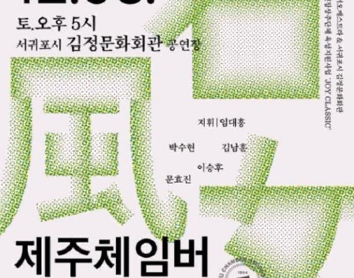 제주 서귀포시가 올해 공연장 상주단체 육성지원 사업의 일환으로 제주체임버오케스트라의 ‘삼다도 소식’을 오는 12월 6일 오후 5시에 김정문화회관 공연장에서 개최한다.이번 공연은 2025년 김정문화회관 상주단체 육성지원사업의 마지막 무대로 제주 지역 작...