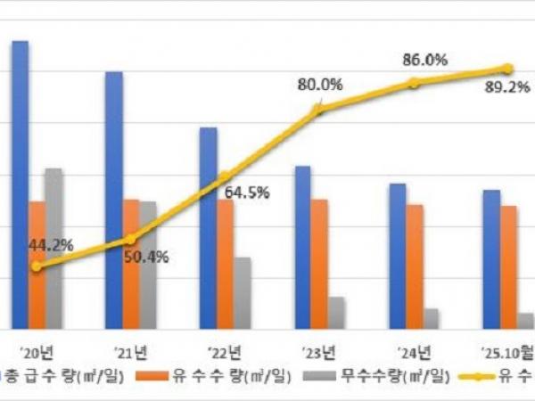제주특별자치도가 6년간 추진한 ‘지방상수도 동(洞) 지역(서부) 현대화사업’에서 유수율 89%를 달성하며, 성과판정을 실시한 전국 지방자치단체 중 누수 저감량 1위를 기록했다.제주...