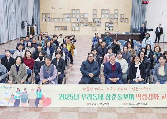 김완근 제주시장이 지난 22일 시청 1별관 회의실에서 열린 올해 ‘우리동네 삼춘돌보미’ 역량강화 교육에 참석해 관계자들을 격려했다.이번 교육은 시민과 가장 가까운 곳에서 어려운 이...