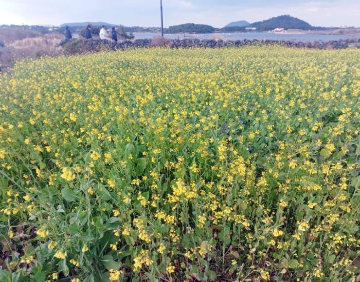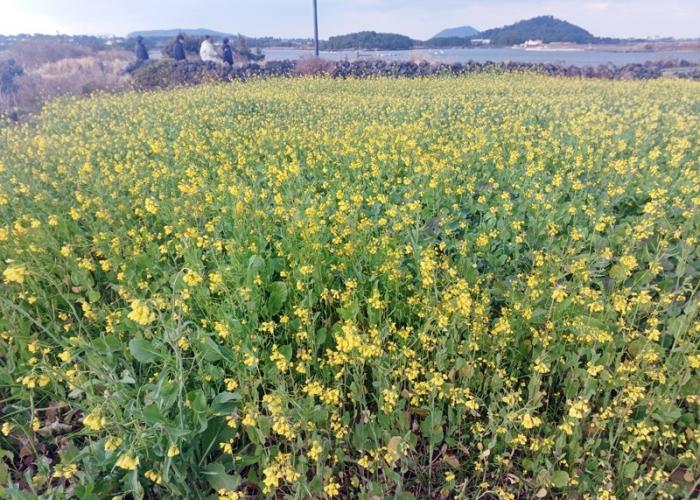 ▲ 성산읍 유채꽃성산읍 일출봉에서 고성리를 지나는 제주 올레1코스 광치기해변옆 지방도로는 오조포구와 한라산이 조망된다. 이곳 도로변에는 겨울을 무색하는 유채꽃이 환하게 피어나 지나...