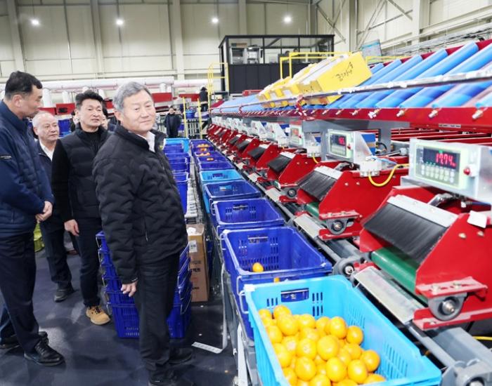 김완근 제주시장이 만감류 출하기를 맞아 지난 20일 하귀농협 스마트 산지유통센터(APC)를 방문해 제주산 만감류의 유통 전 과정을 점검하고 현장의 의견을 청취했다.김 시장의 이번 ...