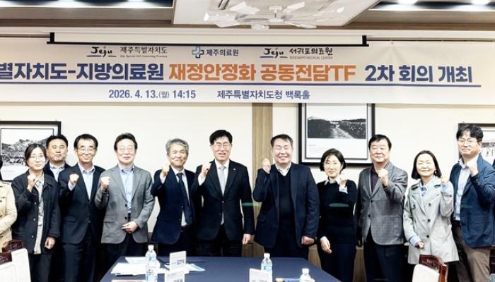 제주도가 지난 13일 도청 백록홀에서 지방의료원 재정안정화 공동전담조직(TF) 2차 회의를 열고 구체적인 개선과제 도출과 실행기반 마련을 위한 본격 논의에 들어갔다.이번 회의는 제주도와 제주의료원·서귀포의료원 관계자, 외부 전문가 등이 참석해 의료원별 재정현황을 공유하고 실질적인 개선 방향을 함께 모색했다.▲ 지난 13일 도청 백록홀에서 열린 지방의료원 재정안정화 공동전담조직(TF) 2차 회의 참석자들이 기념촬영을 하고 있다.지난 2월 전담조직 출범 이후 처음 열리는 실행 회의인 만큼, 재정진단 결과를 바탕으로 의료원별 핵...