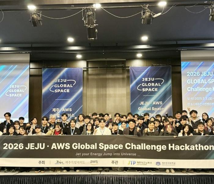 제주한라대학교 RISE사업단이 지난 2일부터 3일까지 이틀간, 제주한라대학교 한라컨벤션센터에서 ‘2026 제주 RISE·AWS 글로벌 스페이스 부트캠프 해커톤’을 개최하고, 글로벌 스페이스 부트캠프 교육생 46명과 해커톤을 포함한 전체 프로그램 참가자 78명이 참여하는
