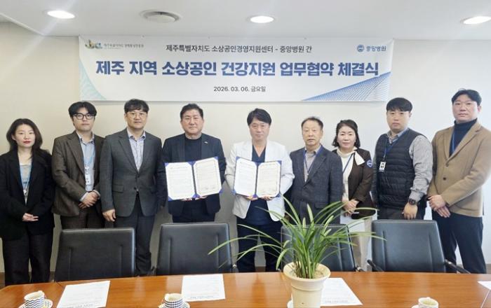 제주도경제통상진흥원 소상공인경영지원센터가 의료법인 중앙의료재단 중앙병원과 ‘소상공인의 건강증진 및 복지지원’을 위한 업무협약을 체결했다.두 기관은 상호 교류를 바탕으로 제주지역 보건의료 복지 서비스 연계 구축과 소상공인의 건강 증진을 목적으로 협약을 진행했다.▲ 제주지