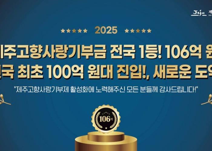 제주특별자치도가 지난해 고향사랑기부제를 통해 총 105억 9천74만 원(잠정)을 모금했다. 이는 전년 대비 약 3배 성장한 규모로 전국 243개 지방자치단체 중 처음으로 100억 원대에 진입한 기록이다.제주도의 모금 건수는 10만 5천205건으로 전년 대비 각각 210