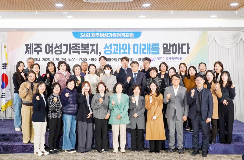 제주여성가족연구원(원장 문순덕)이 지난 25일, 제주샬롬호텔에서 ‘제주 여성가족복지, 성과와 미래를 말하다’를 주제로 ‘제34회 제주여성가족정책포럼’을 성황리 개최했다.