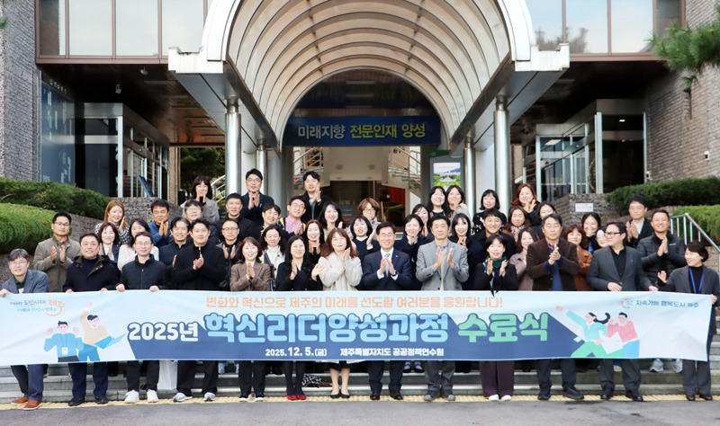 제주특별자치도 공공정책연수원(원장 양제윤)이 지난 5일 ‘2025년 혁신리더양성과정’ 수료식을 열고 행정 환경 변화와 혁신을 주도할 차세대 공직 리더 40명을 배출했다.