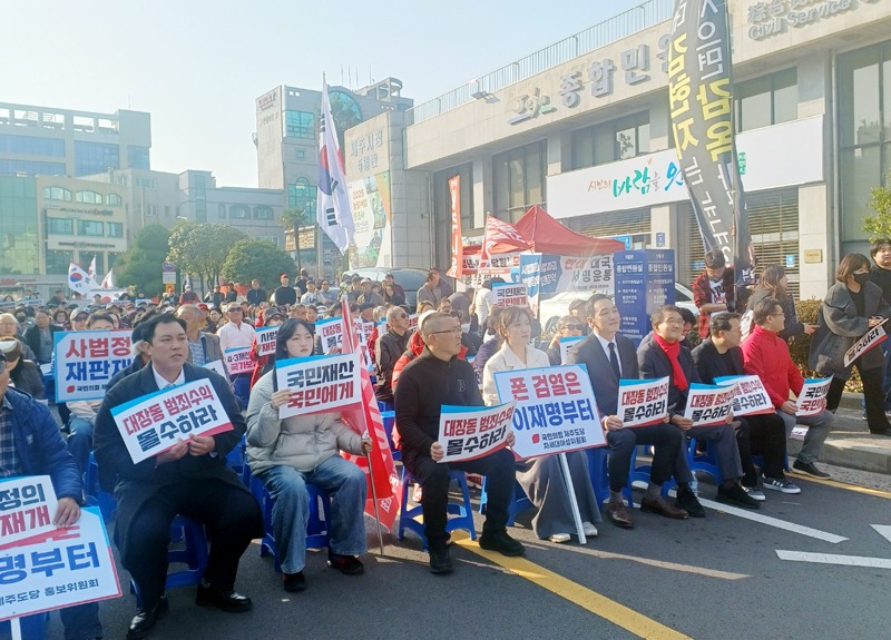 한편 제주 국민대회를 마친 참가자들은 제주시청에서 제주법원을 왕복하는 중앙차로 8km를 도보하면서 거리시위도 전개했다.