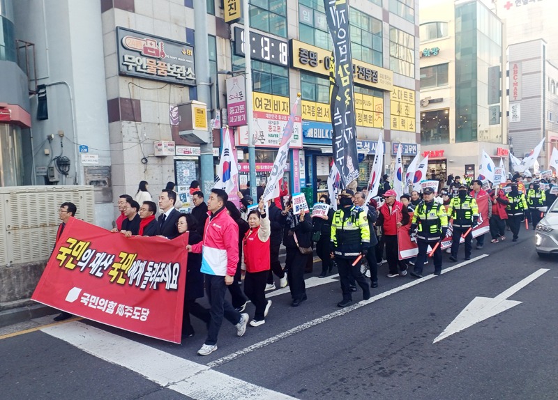보수 제1야당인 국민의힘이 전국적으로 이재명 정권을 비난하고 여당인 민주당을 비난하는 당외 투쟁으로 혼신(渾身)을 다하는 가운데 제주도에서도 보수의 깃발을 흔들며 현 정권을 비판하는 강렬한 멘트가 울려 펴졌다.
