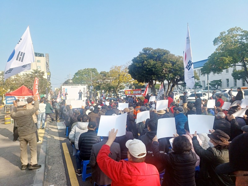 국민의힘 제주도당은 7일 오후 제주시청에서 ‘민생회복 법치수호 제주 국민대회’를 진행하고 참석 당원들 모두가 주변에 휘둘리지 말고 보수의 길을 가자는 의지를 지접 확인 할 수 있었다.